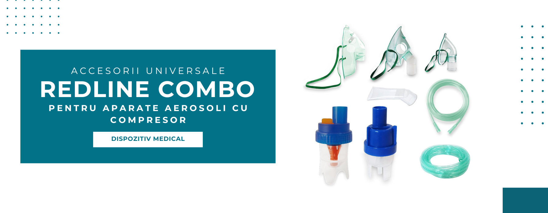 Kitul de accesorii universale RedLine Combo pentru nebulizare contine toate elementele necesare pentru ca medicatia lichida sa fie transformata in particule microscopice fine, usor de inhalat si absorbite de sistemul respirator.