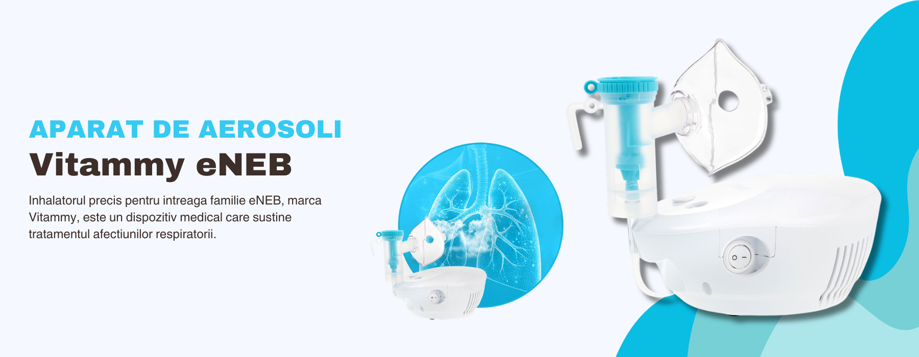 Constructia inhalatorului Vitammy eNEB permite nebulizarea majoritatii medicamentelor disponibile pe piata, inclusiv acid hialuronic, substante pentru fluidificarea secretiilor sau antibiotice. Sustine tratamentul afectiunilor respiratorii prin administrarea directa a aerosolilor in caile respiratorii.