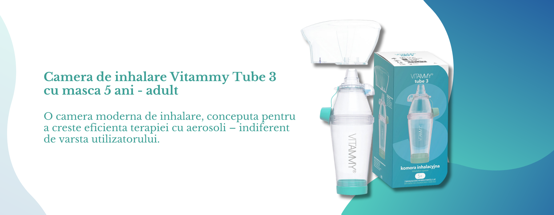 Vitammy Tube este o camera moderna de inhalare, conceputa pentru a creste eficienta tratamentului cu aerosoli – indiferent de varsta utilizatorului. Aceasta permite o administrare completa a medicamentului, directionandu-l profund in plamani, lucru pe care inhalatorul presurizat nu il poate realiza singur.
