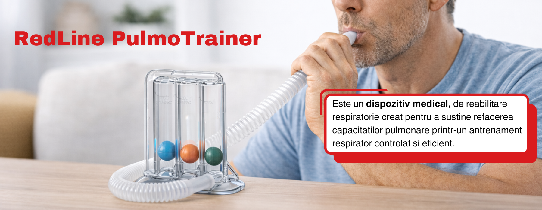 Spirometru RedLine PulmoTrainer este un dispozitiv medical, destinat reabilitarii respiratorii, creat pentru a sustine refacerea capacitatilor pulmonare printr-un antrenament respirator controlat si eficient.