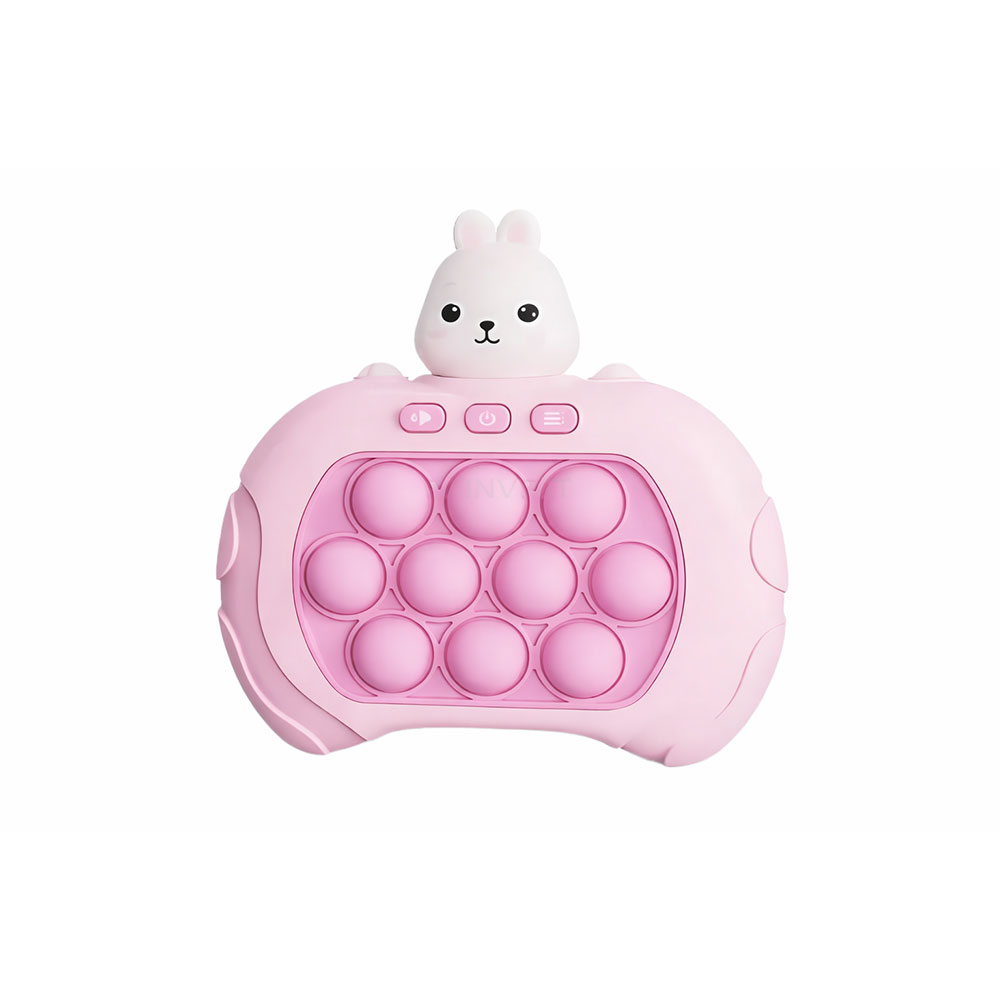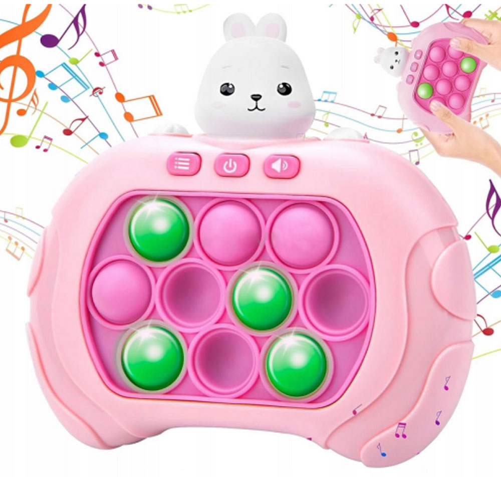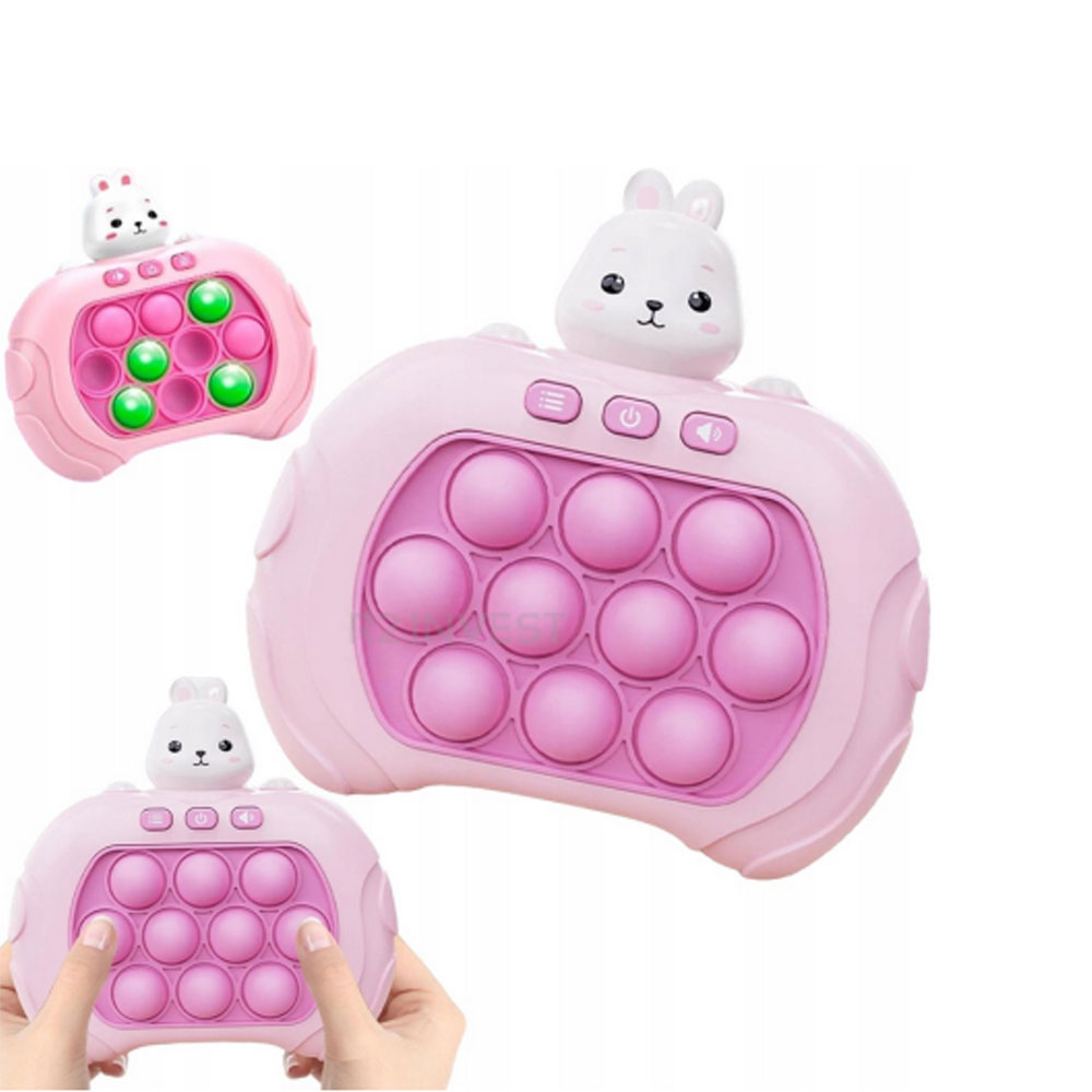 Consola Pop It electronica, pentru copii, anti-stres, portabil, 4 moduri de joc, iepuras roz, Roz