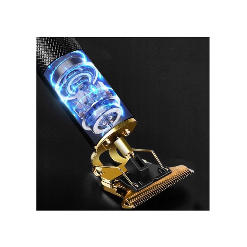 Masina de tuns profesionala T9, pentru barba, par si corp, trimmer barba si contur, otel inoxidabil, lame precise tip T-blade, cap ceramic, 4 capete atasabile, incarcare USB, rezistenta la apa