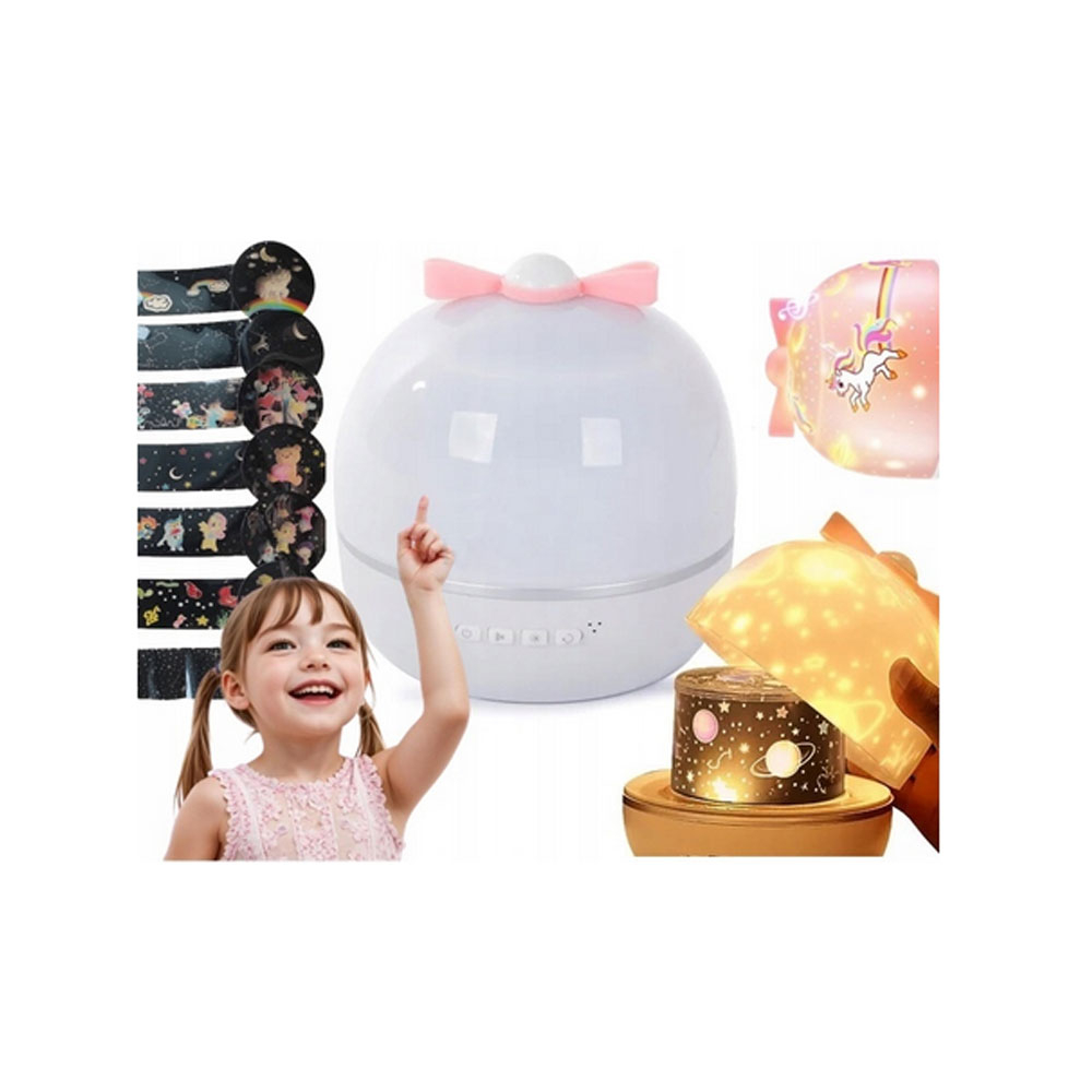 Lampa proiector LED copii, 10 teme de iluminare si 10 sunete ambientale linistitoare, functia de reglare a intensitatii luminii, telecomanda wireless, alimentare USB sau baterii