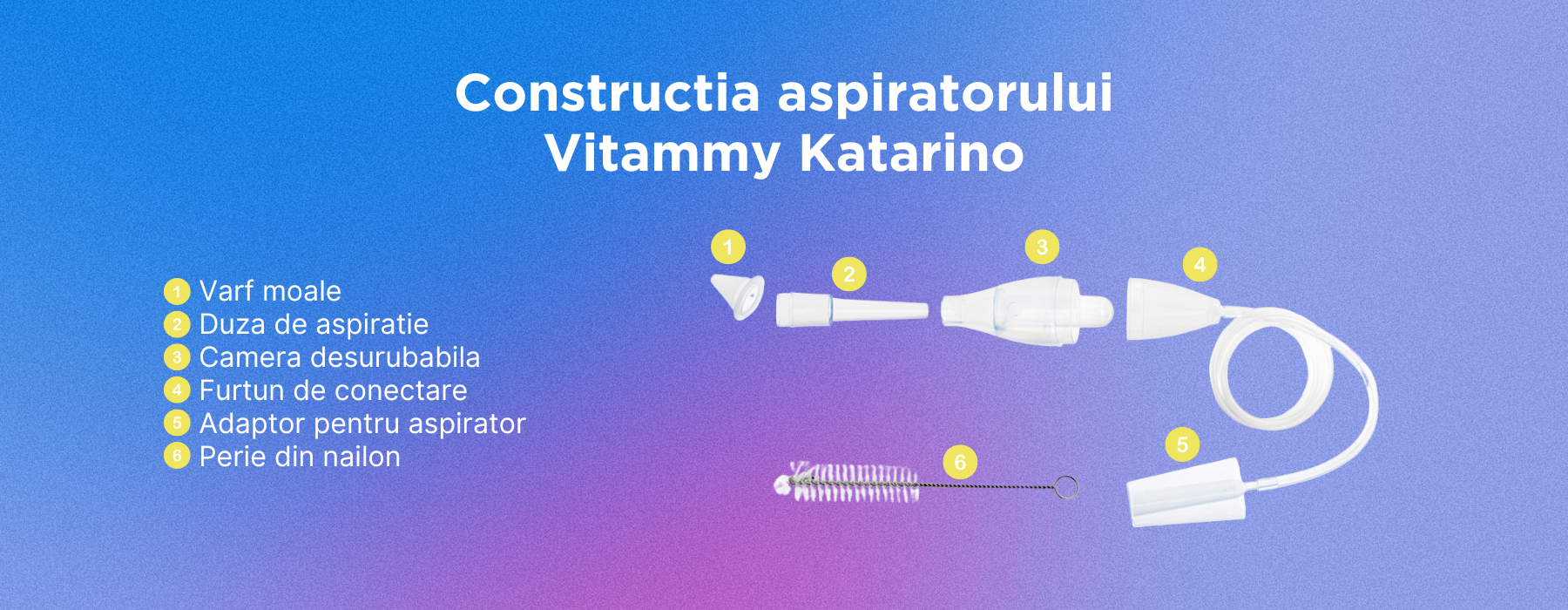 Vitammy Katarino este un element indispensabil in trusa fiecarui parinte. Aspiratorul permite curatarea rapida si eficienta a nasului copilului de secretii, ajutand la ameliorarea simptomelor infectiei. Nasul infundat creste riscul agravarii bolii si poate provoca dificultati de somn si o stare de disconfort pentru copil.