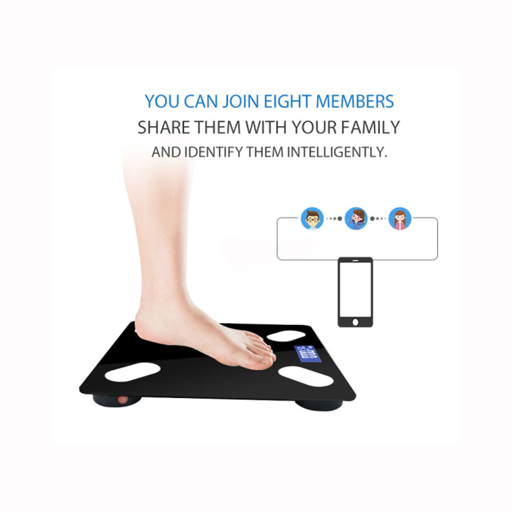 Cantar corporal smart B2017, Bluetooth, din sticla securizata neagra, masurarea si monitorizarea a pana la 8 parametri ai corpului, Bluetooth, pana la 180 kg