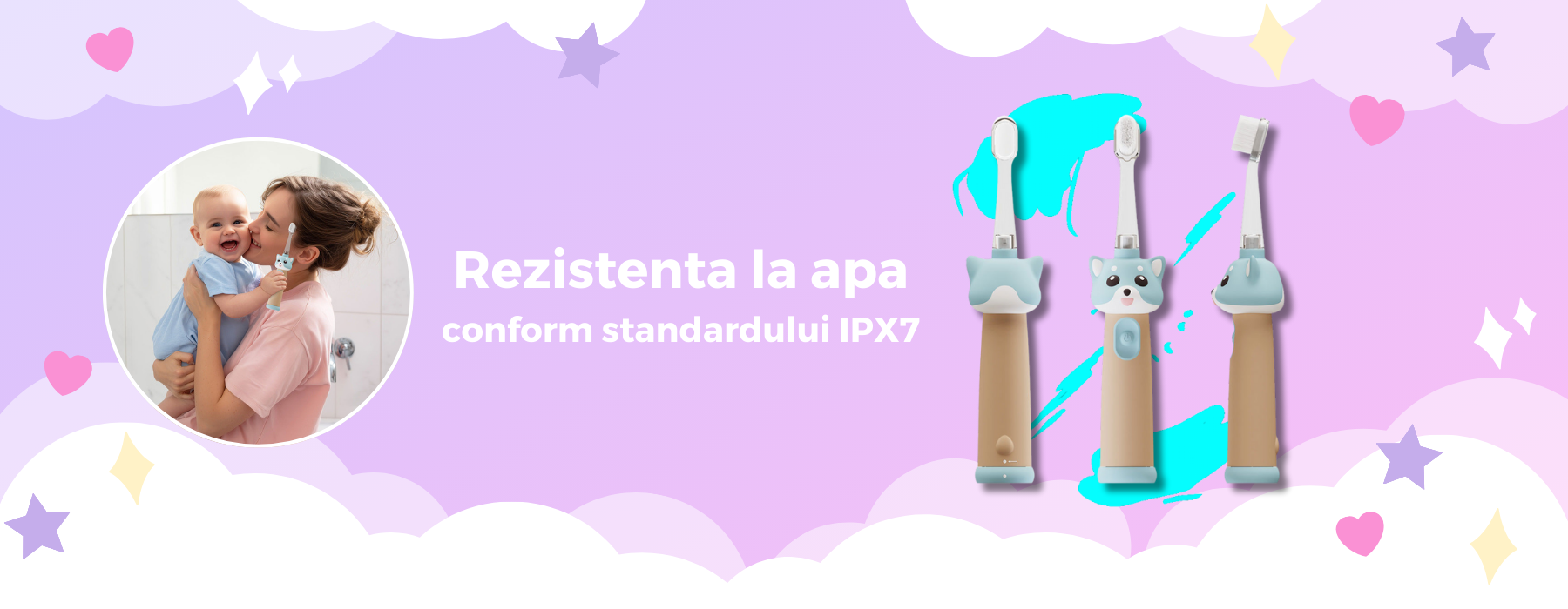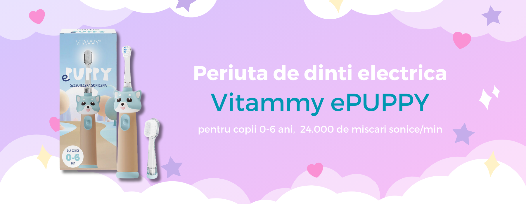 Periuta de dinti electrica Vitammy ePUPPY, cu design vesel in forma de catelus, transforma periajul intr-o experienta placuta inca din prima zi de viata.