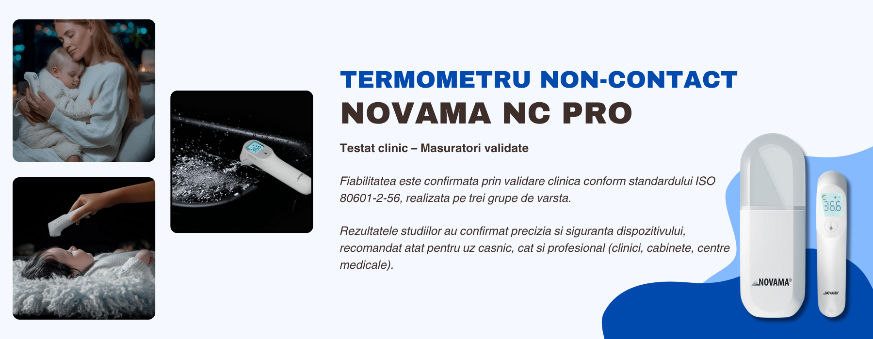Cand vine vorba de sanatatea celor dragi, fiecare secunda conteaza. Novama NC Pro este termometrul care combina tehnologia de ultima generatie cu grija autentica, oferind masuratori rapide, precise si complet fara contact - totul in doar o secunda. Creat pentru parinti atenti, pentru personal medical si pentru oricine isi doreste liniste si siguranta in propria casa, acest termometru premium transforma monitorizarea temperaturii intr-un gest simplu, confortabil si de incredere.
